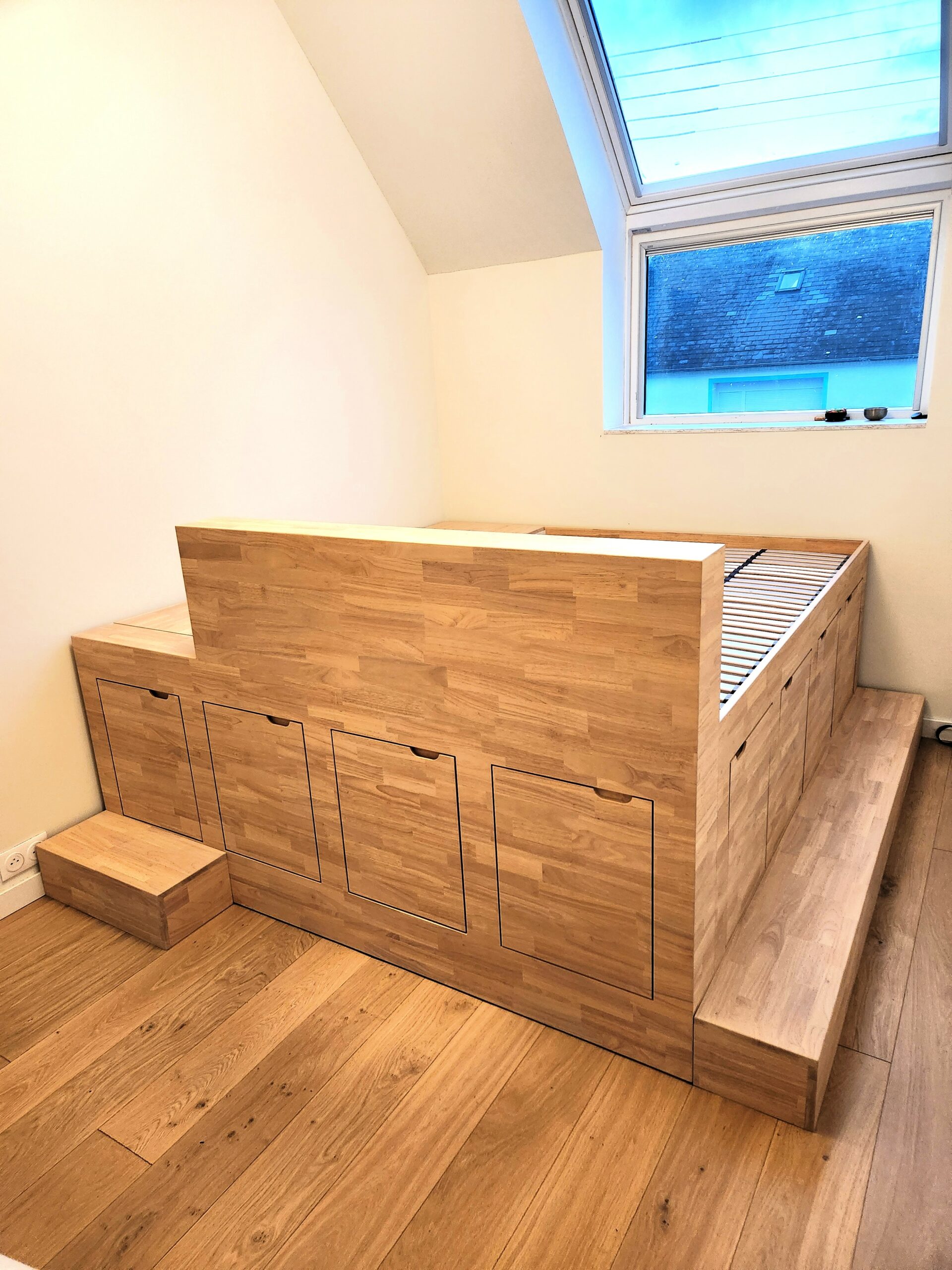 Chaque pièce est conçue avec soin dans nos ateliers à Nantes, puis minutieusement assemblée sur site, afin de garantir un rendu final irréprochable et sur mesure.