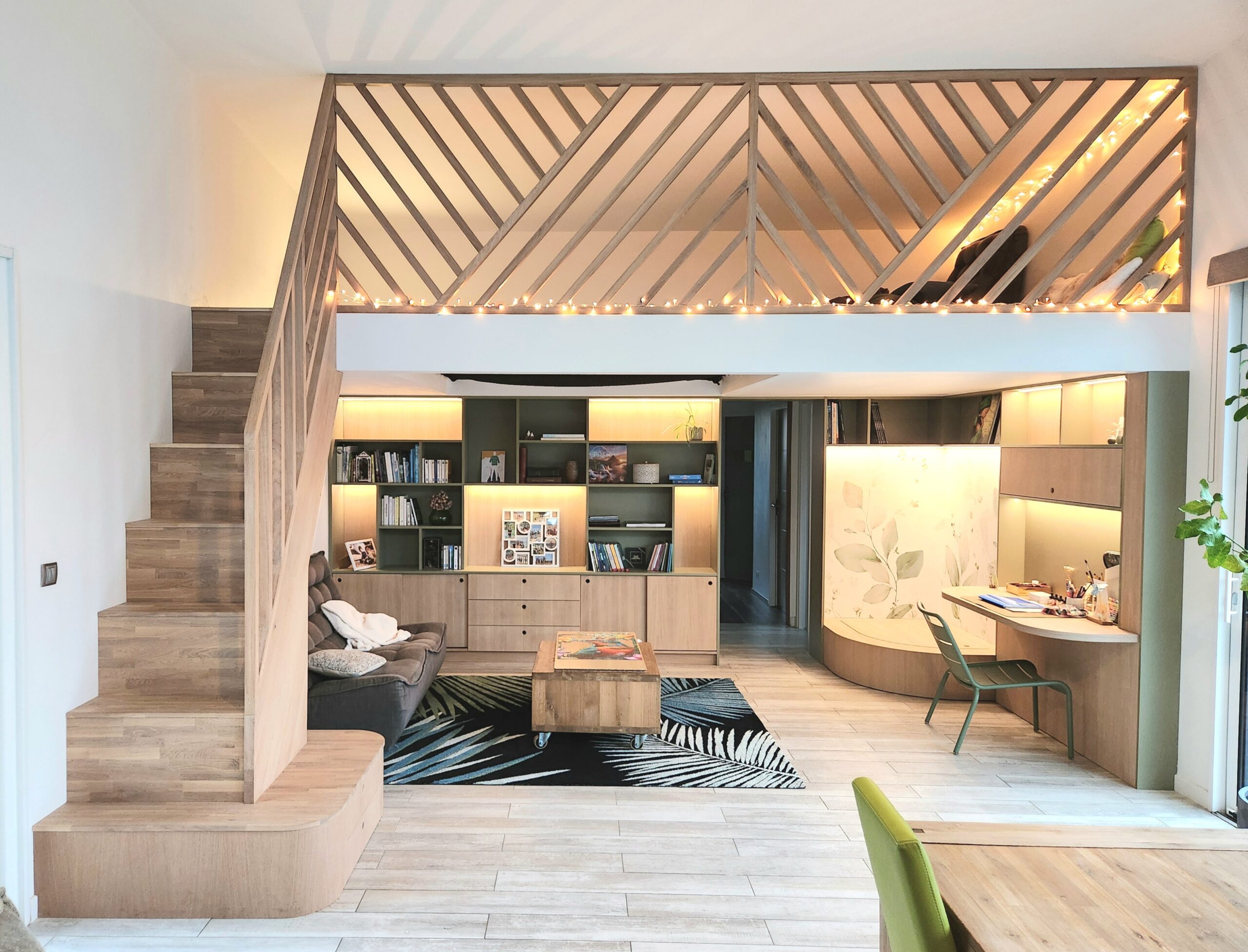 Chaque détail compte : le choix des matériaux, les essences de bois, les teintes, les finitions et les éléments de personnalisation sont soigneusement pensés pour créer un espace qui vous ressemble